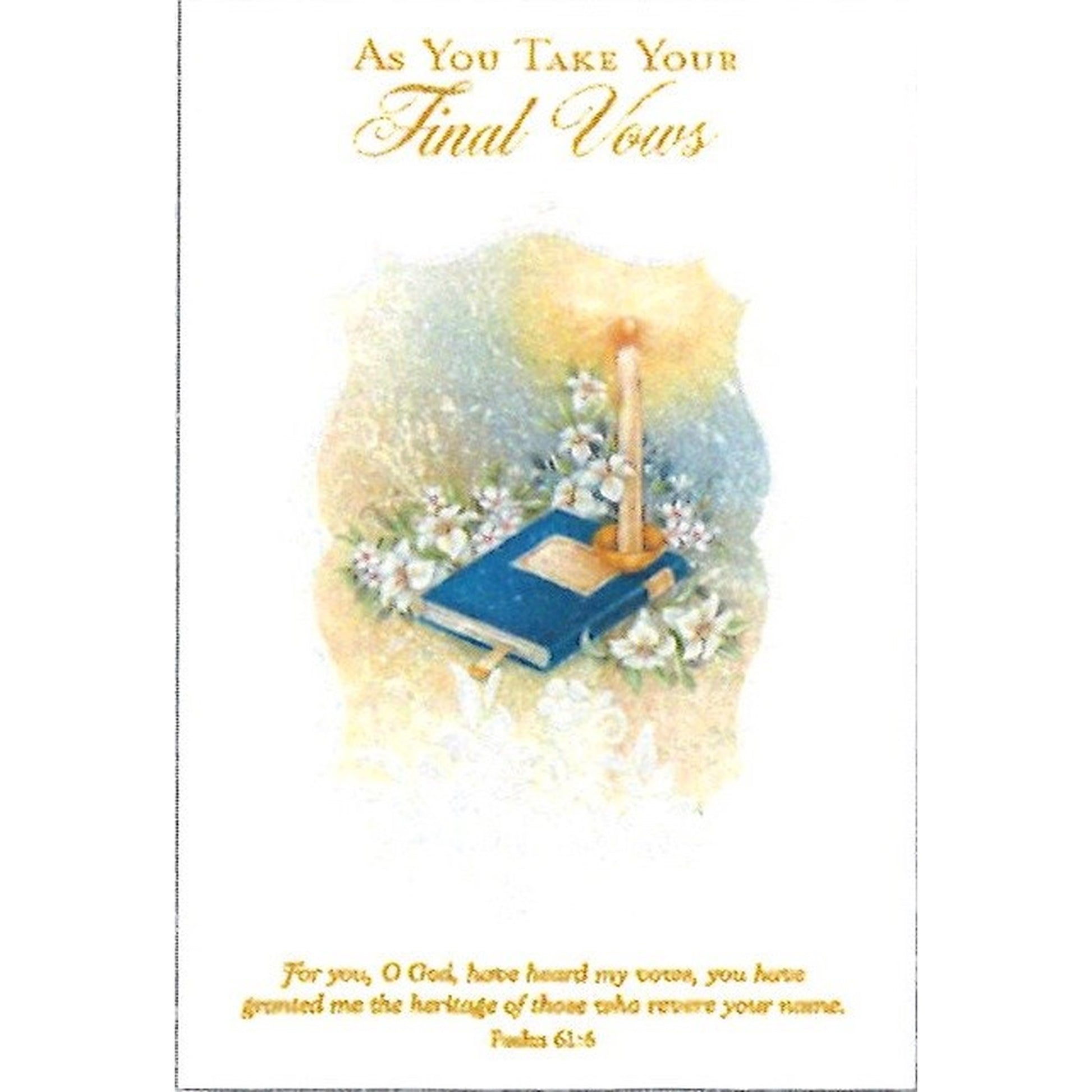 Words on Front: As You Take Your Final Vows; For you, O God, have heard my vows, you have granted me the heritage of those who revere your name. Psalm 61:6