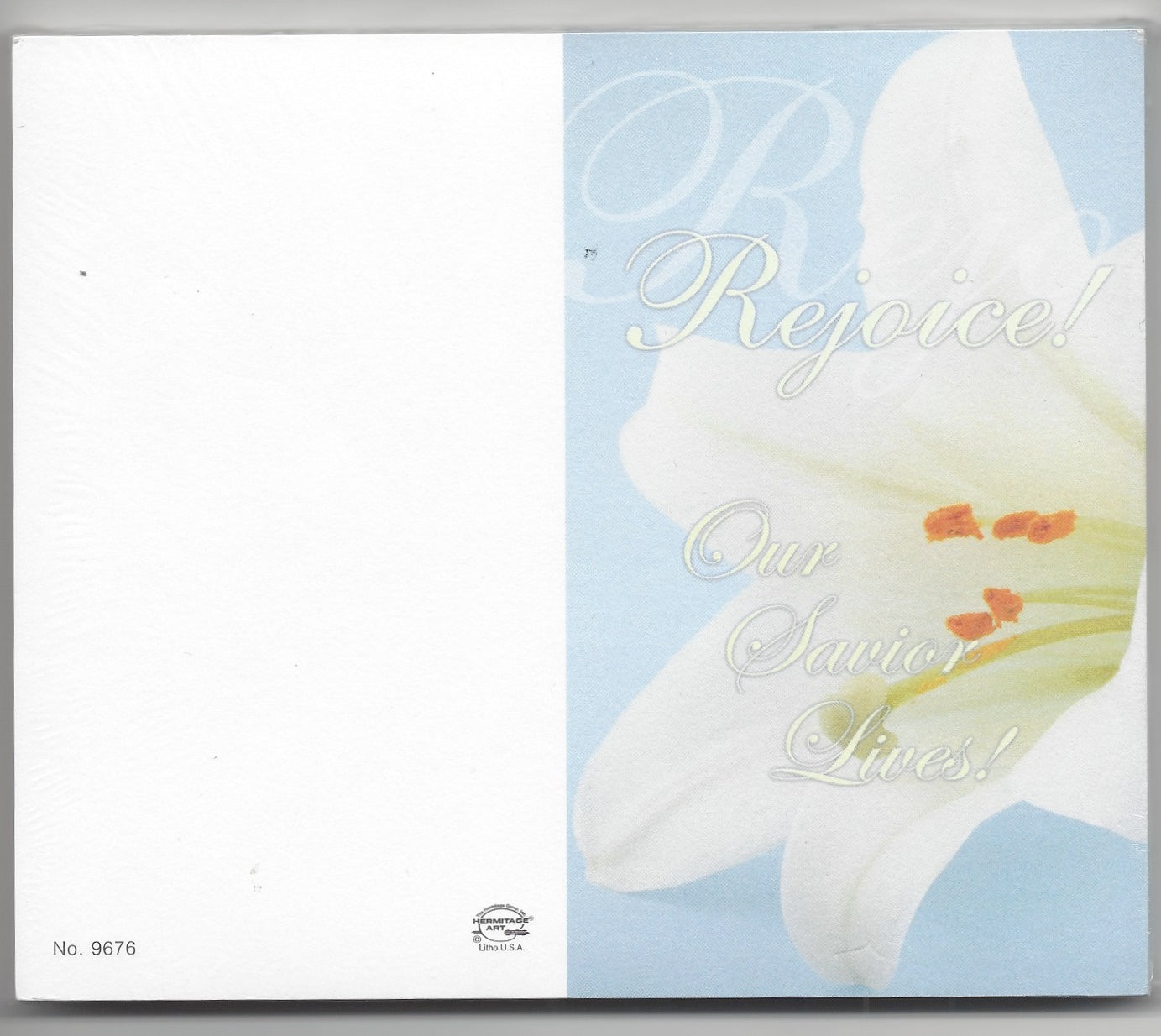 This bulletin features the message "Rejoice Our Saviour Lives" and measures 6.75" x 5.75" when unfolded. It comes in a package of 100.