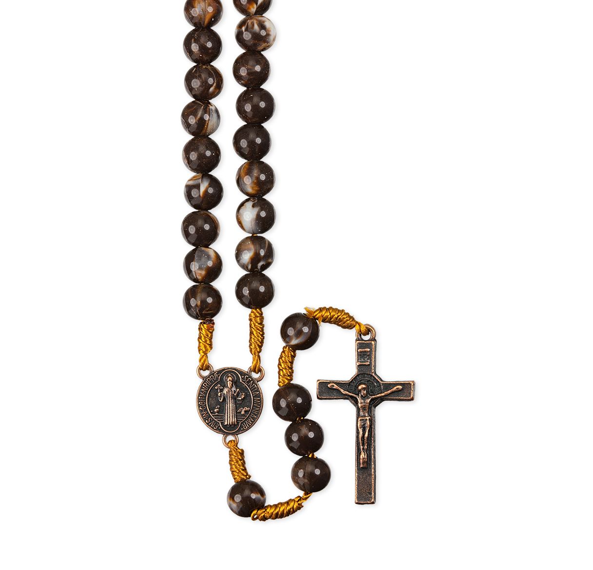 Marbleized Brown Bead Rosary with St. Benedict Crucifix