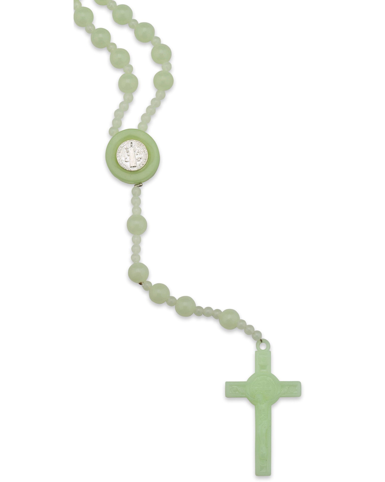 This St. Benedict Rosary is crafted from luminous plastic 8mm beads and manufactured in Italy.