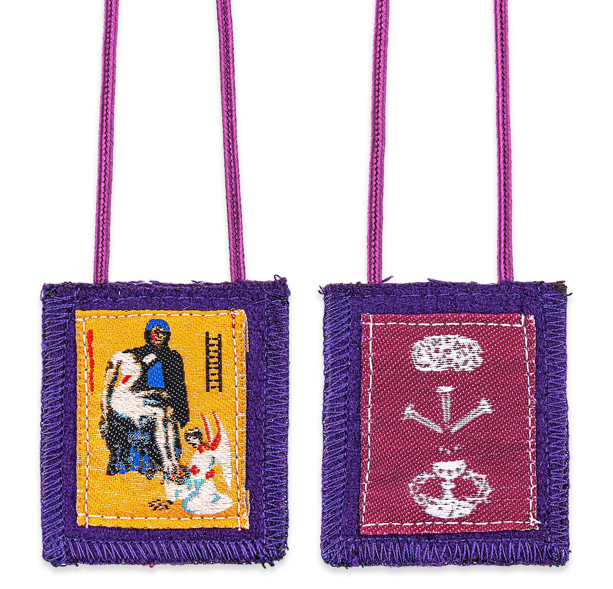 At last, a smaller wearable size Purple Scapular! Made from 100% wool according to the specifications of Blessed Marie-Julie Jahenny. It measures about 2″ x 1.5″ making it the perfect size to wear. Highly detailed pictures on both panels. Receive the blessings and protections promised to Blessed Marie-Julie by the Blessed Virgin Mary: “I will grant great graces to those who will wish to wear this holy Habit.”
