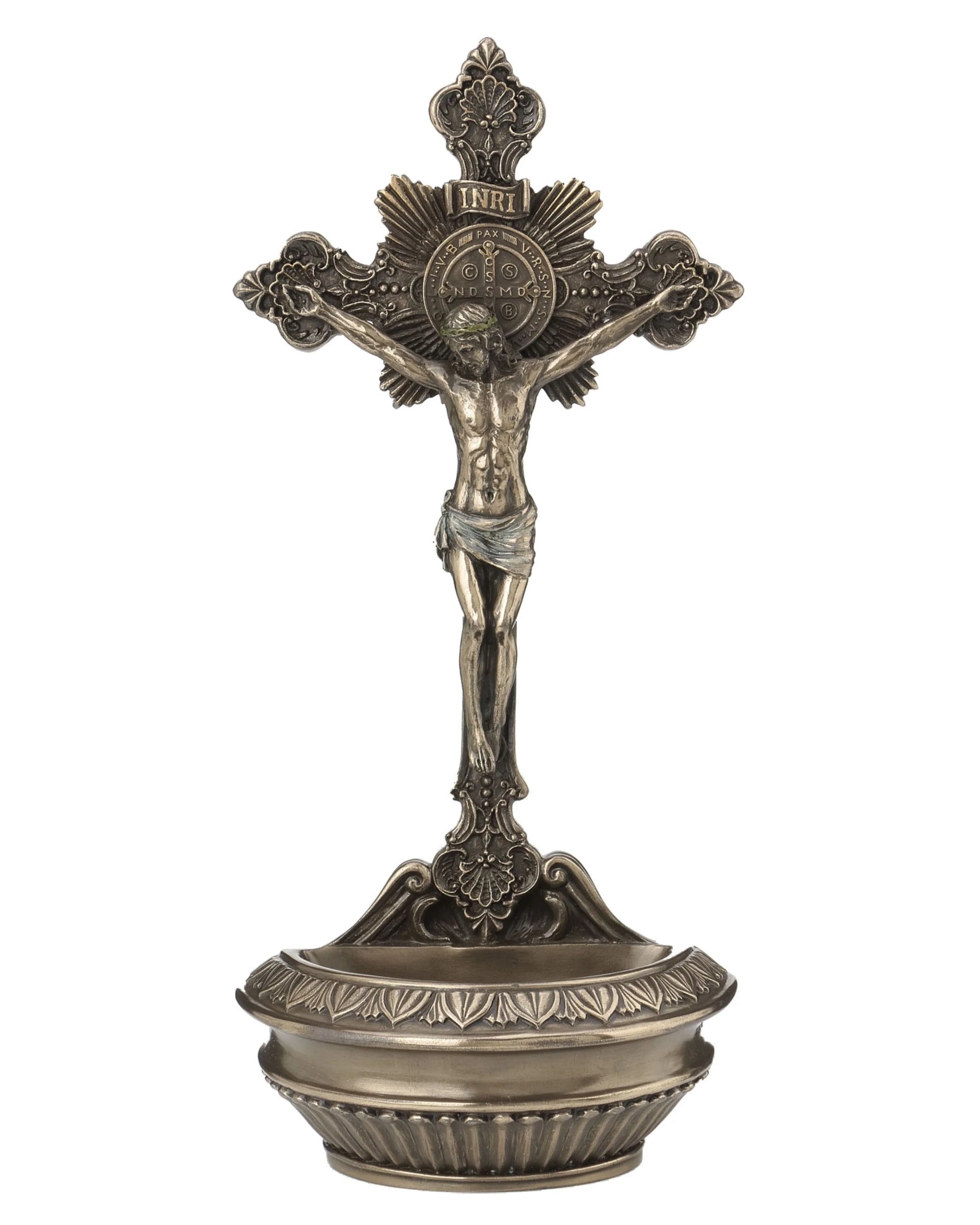 St. Benedict Crucifixion Holy Water Font 9.5"